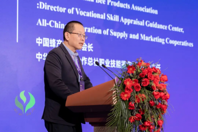 中国蜂产品协会会长、中华全国供销合作总社职业技能鉴定指导中心主任杨荣;